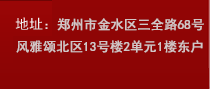 電話:13633859251  地址:鄭州市金水區(qū)三全路68號風(fēng)雅頌北區(qū)13號樓2單元1樓東戶